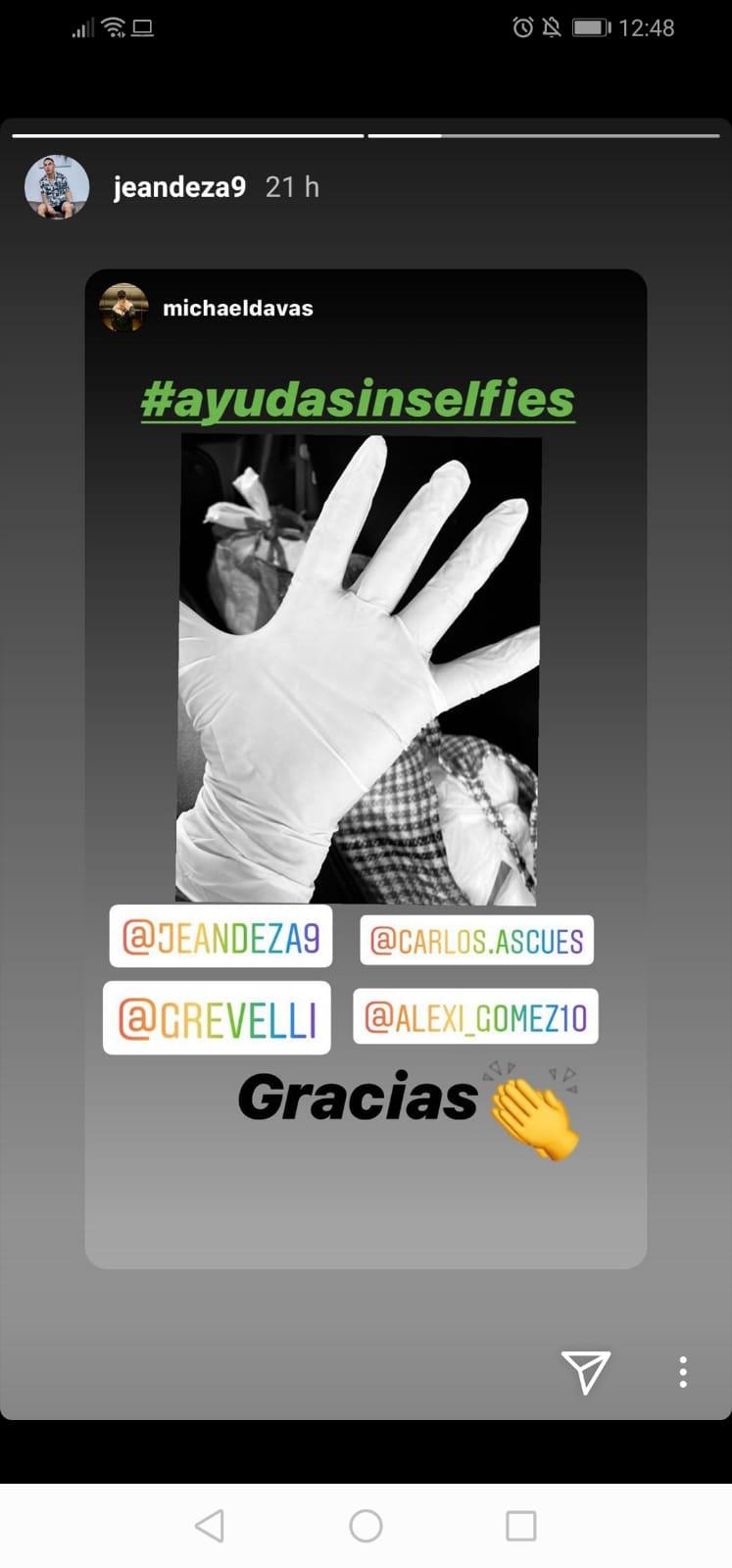 Una publicación de Instagram dio indicios de esta obra social ya que fueron etiquetados en una historia con el mensaje “Ayuda sin selfies”. En la fotografía solo se aprecian unos guantes y bolsas de alimentos.