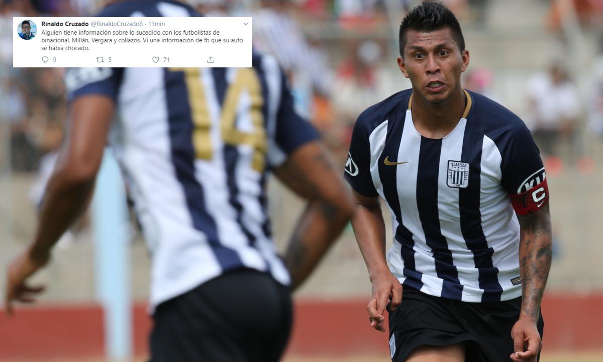 El volante de Alianza Lima, Rinaldo Cruzado usó su cuenta de Twitter para preguntar sobre la situación de sus colegas de Binacional, Juan Pablo Vergara, Donald Millan y Jefferson Collazos, quienes sufrieron un terrible accidente en una de las carreteras de Puno.