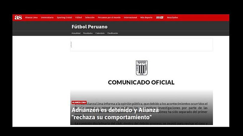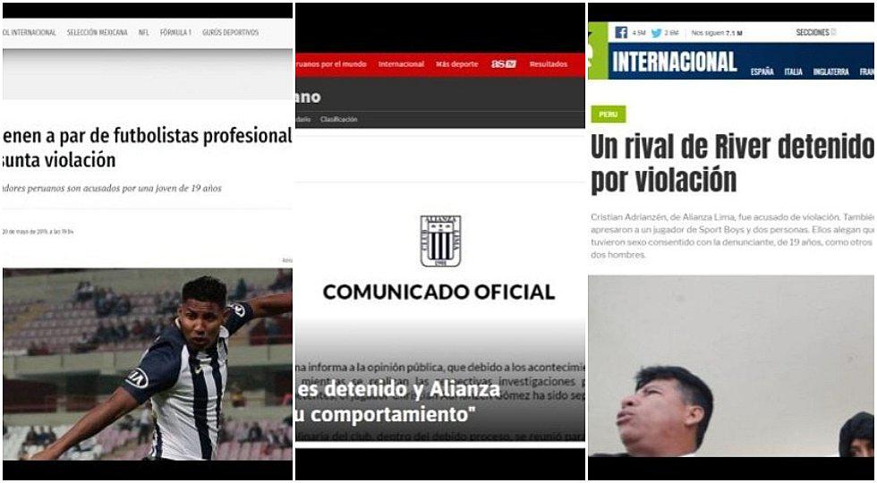 Así informó la prensa internacional la detención de los jugadores peruanos Christian Adrianzén, de Alianza Lima, y Josué Rodríguez, de Sport Boys. Desde México, Chile, España y Argentina tocaron el complicado tema que ha pasado al terreno judicial tras las denuncias respectivas.