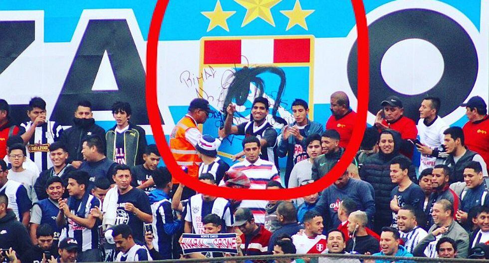 Barristas de Alianza Lima devuelven pintas tachando símbolo de Sporting Cristal, los seguidores del cuadro íntimo que llegaron hasta el Estadio Alberto Gallardo para apoyar a su escuadra, durante el duelo ante Unión Comericio por la fecha 17 del Torneo Apertura, fueron captados dañando las instalaciones del recinto.