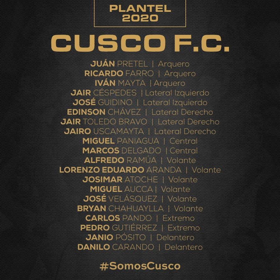 Cusco Fútbol Club anunció la conformación de su nuevo plantel de cara para el 2020. A través de sus redes sociales, el club cusqueño hizo oficial la incorporación de varios futbolistas con recorrido en el fútbol peruano.