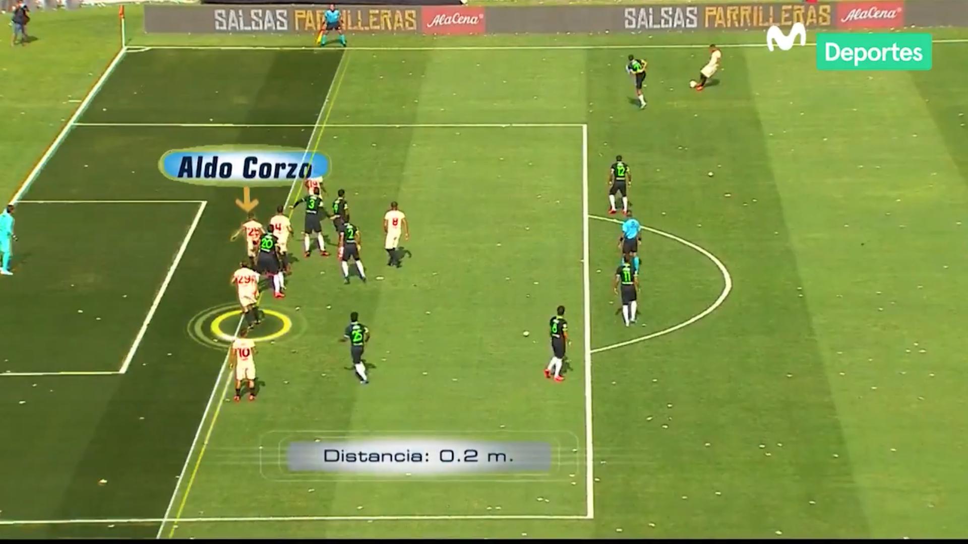 Precisamente el primer gol de Universitario de Deportes fue algo polémico por la posición de Aldo Corzo. Movistar Deportes analizó la jugada y el defensa crema estaría en posición adelantada, aunque la jugada es muy fina.