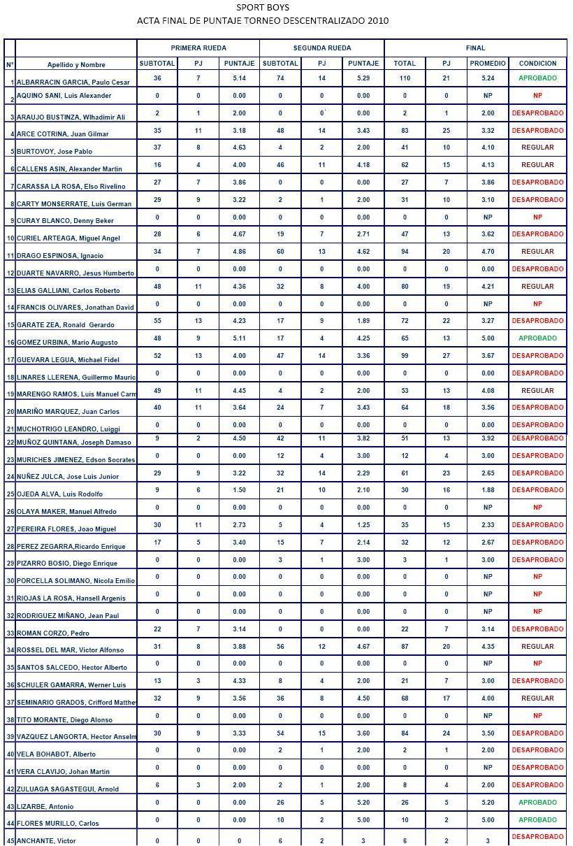 Los hinchas del equipo del Puerto calificaron a los futbolistas de esa temporada y se puede ver los minutos y partidos donde han actuado defendiendo a la rosada.