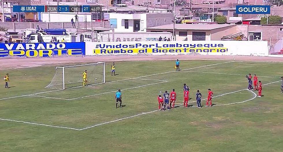 A los 40 minutos de juegos, un tiro libre venenoso al área rival cobrado por Juan Romagnoli, terminó provocando un penal a favor de Cienciano del Cusco. Vega agarró en el área chica a Juan Diego Lojas y el arbitro Miguel Santivañez no dudó en cobrar penal. El mismo Romangnoli, tomó el balón y puso el 4-2 final ante Juan Aurich.