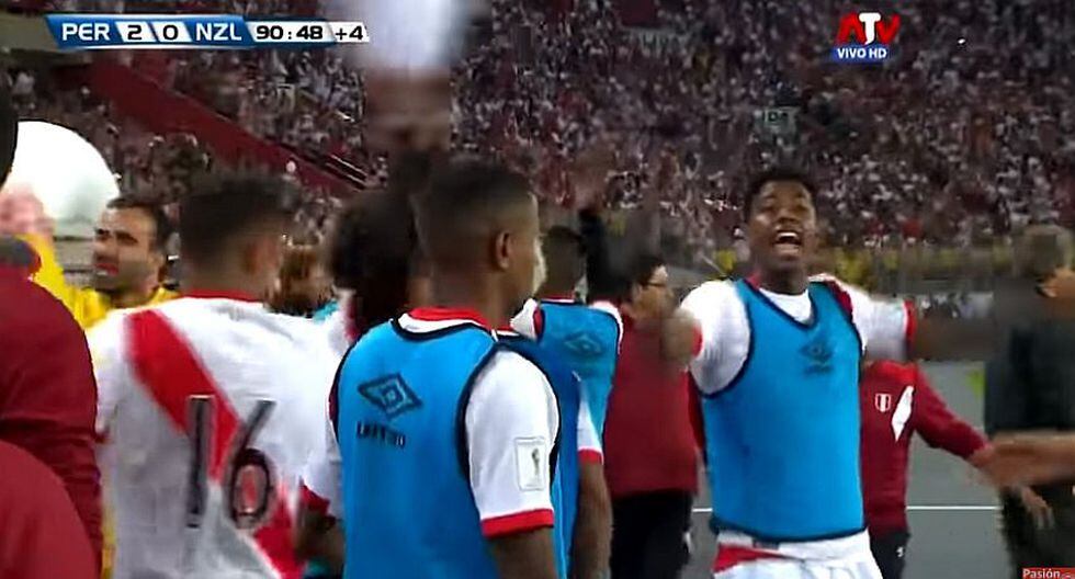 Los jugadores de la selección peruana que se encontraban en la banca de suplentes pedían al público que siga alentando a falta de 2 minutos para el pitazo final.