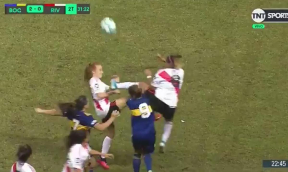 Por más que parezca increíble, así sucedió en este clásico. En el segundo tiempo, Daniela Mereles de River Plate, saltó con la pierna en alto y su patada impactó en la cabeza de su compañera, que de forma inmediata se quedó tendida en el césped. La que sufrió esta acción, Morcillo, tuvo que recibir ayuda médica. Además, Andrea Ojeda sufrió una infracción por la propia acción y la jugadora del ‘Millo’ recibió una tarjeta amarilla.