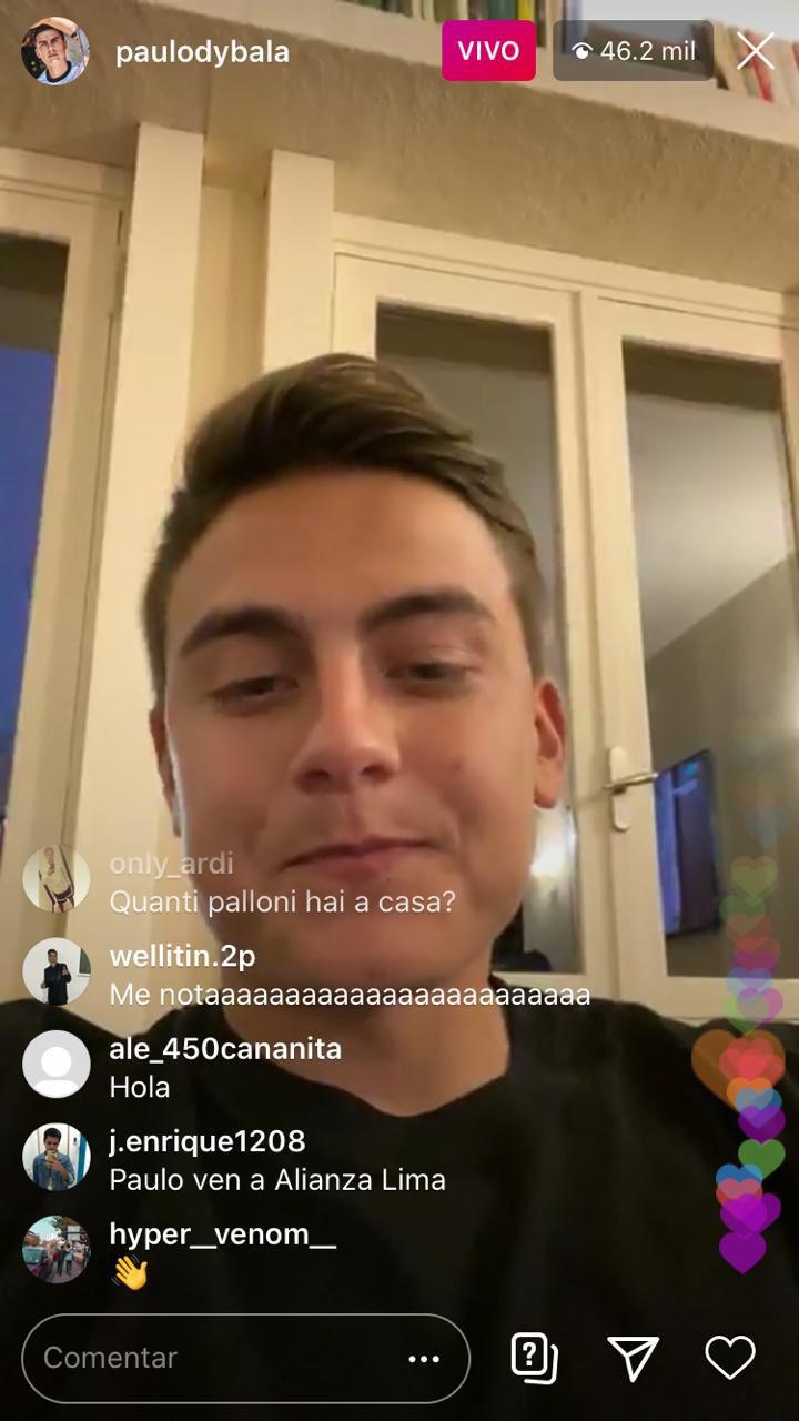 Ante la paralización del fútbol en Italia, debido a la cuarentena impuesta por el gobierno para evitar la mayor propagación del coronavirus, el delantero de Juventus, Paulo Dybala realizó un en vivo a través de su cuenta de Instagram.