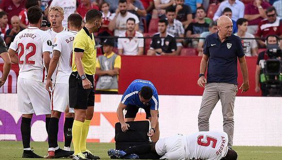 El galo, contratado esta campaña procedente del Lille de su país, fue trasladado a un centro sanitario de Sevilla para corregir esa luxación y después conocer más exactamente el alcance de la dolencia, informó a los periodistas el entrenador del equipo, Pablo Machín.Ibrahim Amadou cayó mal sobre el césped poco antes de cumplirse el primer cuarto de hora en su duelo por la Europa League y pronto alertó a sus compañeros de que se había dañado. El francés fue atendido sobre el terreno de juego y las asistencias ya pidieron el cambio antes de retirarlo en camilla y que fuera sustituido por Roque Mesa.