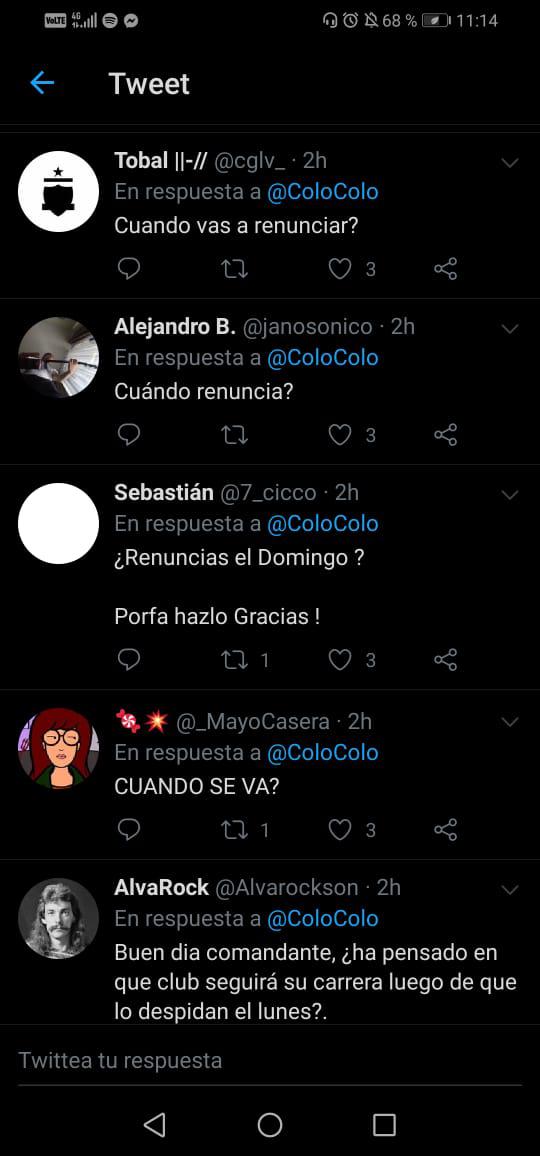 De inmediato los fanáticos del cuadro chileno empezaron a dejar sus interrogantes. La pregunta que más veces se hizo fue : ¿Cuando va a renunciar?