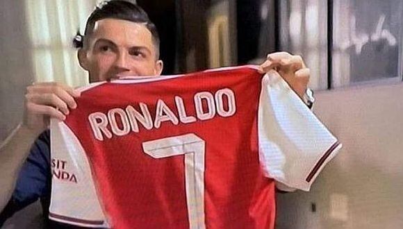 En un momento de la conversación, el periodista le obsequió a Cristiano Ronaldo una camiseta del Arsenal, con su habitual número y su nombre grabado en la espalda.