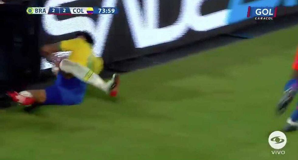 Pudo ser peor. Neymar fue el protagonista de una aparatosa caída la noche del viernes cuando Brasil y Colombia disputaron un amistoso en el Hard Rock Stadium de Miami. El atacante del 'Scratch' chocó contra Davison Sánchez y se estrelló de cara contra un panel publicitario de luces led.