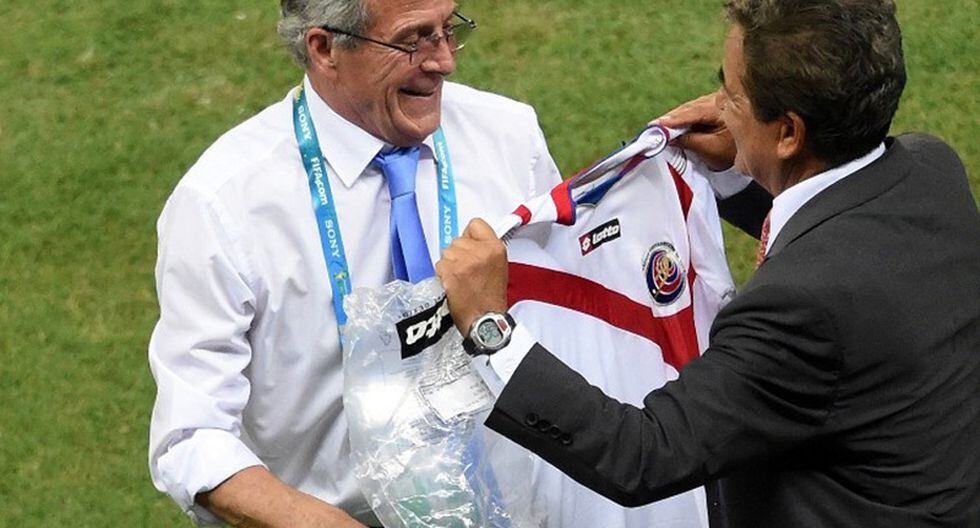 Al finalizar el partido entre Costa Rica y Uruguay , con triunfo centroamericano, los entrenadores de ambos equipos se saludaron.
