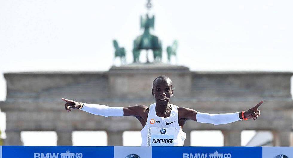 El corredor africano Eliud Kipchoge es auspiciado por Nike y el año pasado corrió la distancia del maratón en un tiempo de 2h00'25", en el circuito de Monza, en Italia, en el marco de la "Breaking 2". Esta vez, Kipchoge se impuso a los 44 mil atletas inscritos en la competencia que se inició y culminó junto a la emblemática Puerta de Brandeburgo.