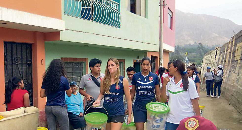 La selección peruana de vóley visitó ayer la zona afectada por los huaycos en Chosica y brindaron ayuda a los damnificados.