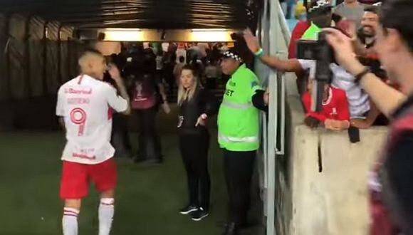Al mediotiempo, Paolo Guerrero recibió una serie de insultos por parte de los hinchas de Flamengo que se encontraban bastante cerca a la zona de ingresos al camerino y el 'Depredador' les respondió con una serie de gestos, antes de entrar al vestuario de Internacional.