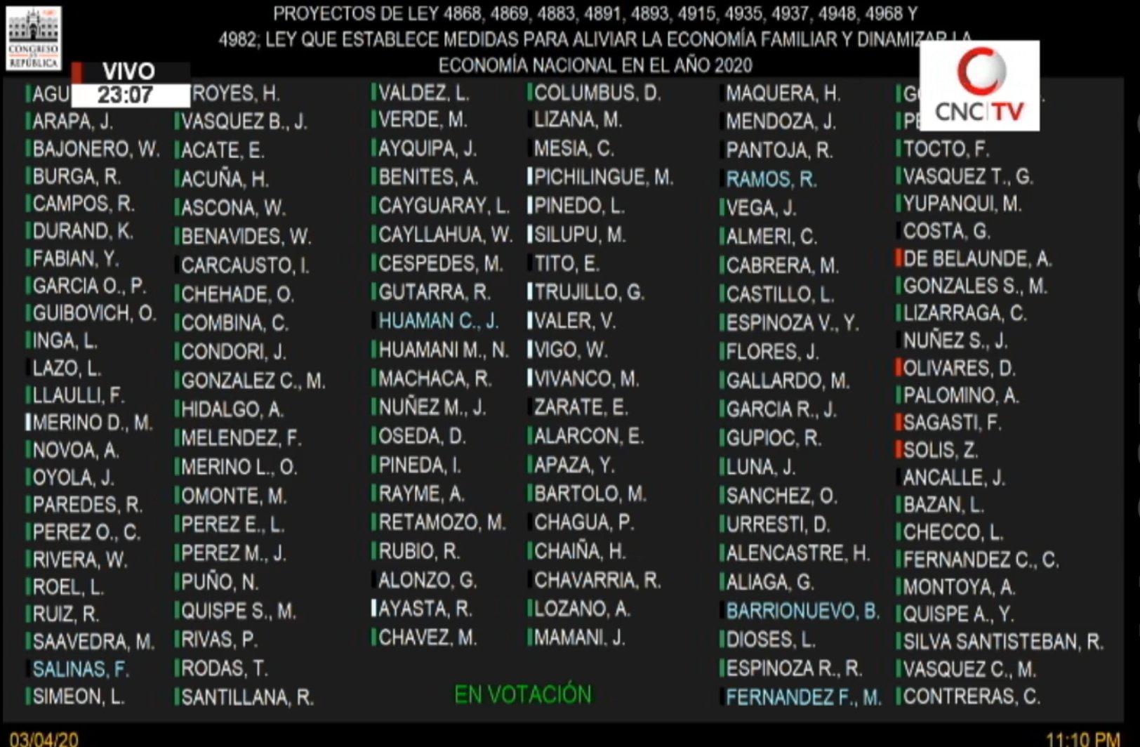 Con 107 votos a favor, 4 en contra y 0 abstinencias, fue aprobada la ley para que los aportantes a la AFP retiren un 25% de sus fondos. El motivo de la aprobación fue debido a la cuarentena nacional que se vive en todo el país.