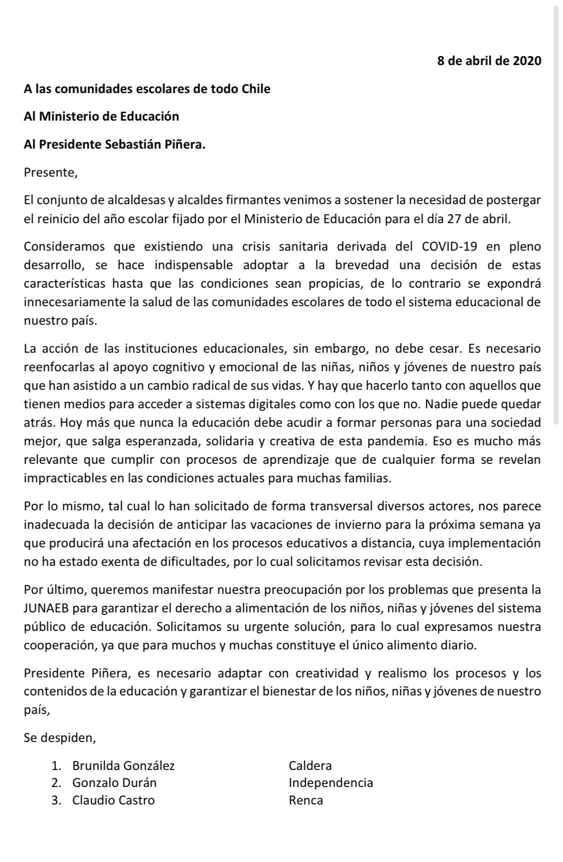 - Coronavirus en Santiago EN VIVO | Alcaldes de 85 municipalidades imploran al Gobierno extender reinicio de clases presenciales. 85 burgomaestres proponen que las clases se reinicien el 27 abril y no el 13.