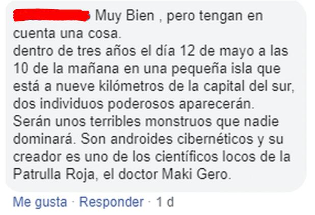Este mensaje que escriben los usuarios de Facebook pertenece al universo de Dragon Ball, concretamente a la saga de los androides 17 y 18.