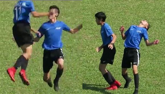 Pero lo que nadie pensaba es que esta versión del 'SIUUU' iba a terminar con un puñete. Sí, el juvenil saltó pero en lugar de caer con los brazos abiertos y gritando como lo hace el portugués, este niño saltó y giró con un puñete, que impactó en la cara de su compañero. Incluso en el video se puede apreciar que se coge la mano tras el golpe.