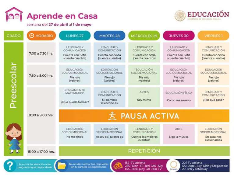 Aprende En Casa, plataforma online habilitada por la Secretaría de Educación Pública de México, viene llevando a cabo sus cursos para preescolar, primaria, secundaria y bachillerato. Además, diversos canales como TV UNAM, Canal Once y Canal 14.2 vienen transmitiendo de lunes a viernes todos los programas y cuentan con la opción de poder ver las retransmisiones a través de portales web.
