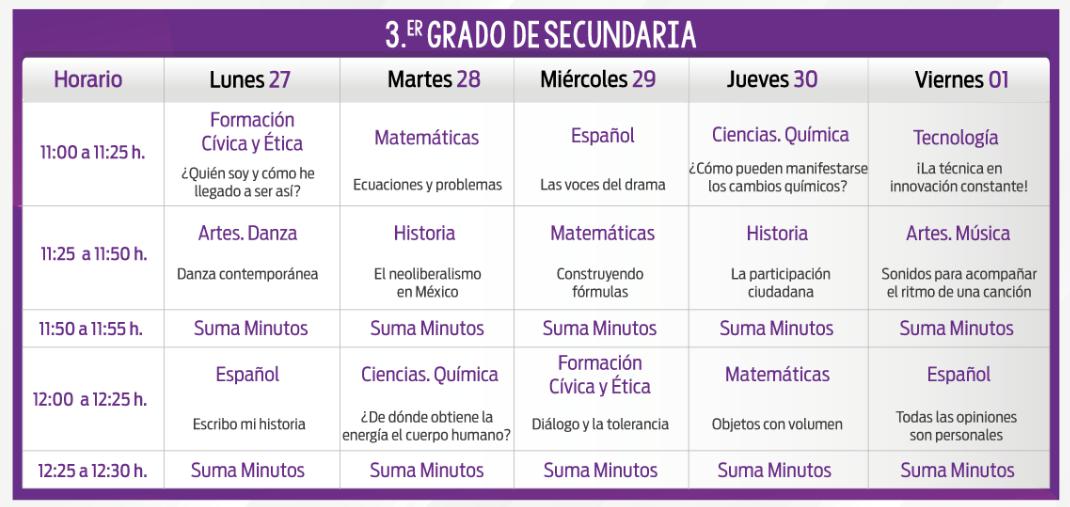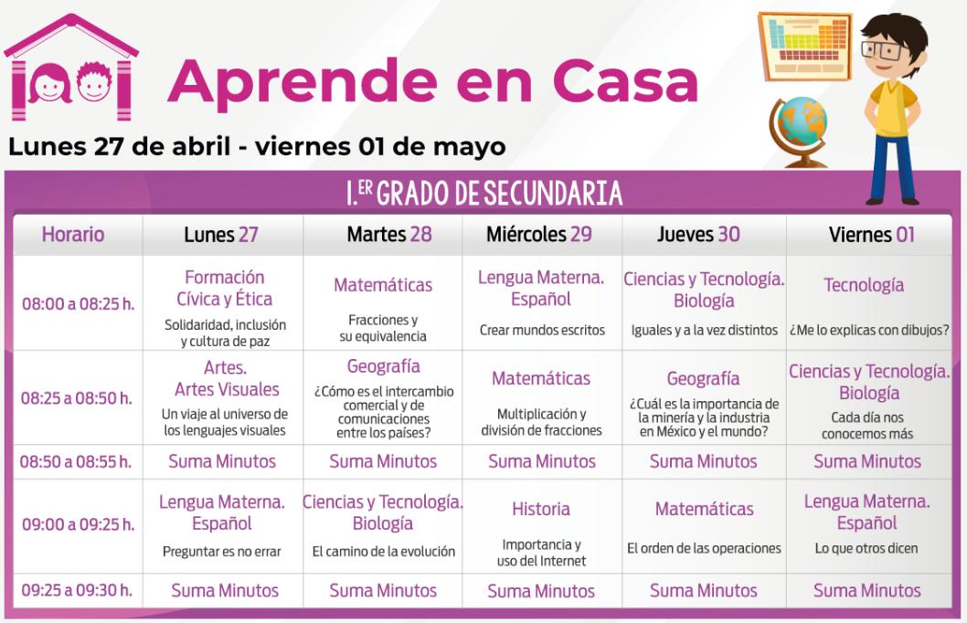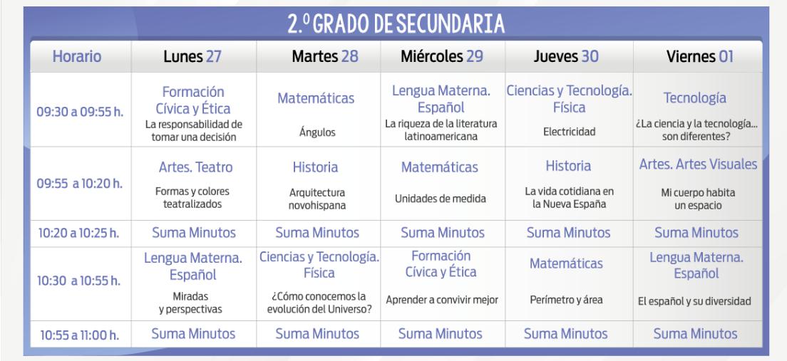 Aprende En Casa: Programación y horarios secundaria